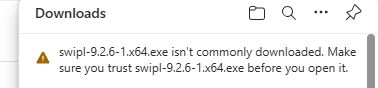 Going through the steps of downloading and installing SWI-Prolog, I was very wary of warnings from Windows about trusting the SWI-Prolog executable for the installation. I got the message: