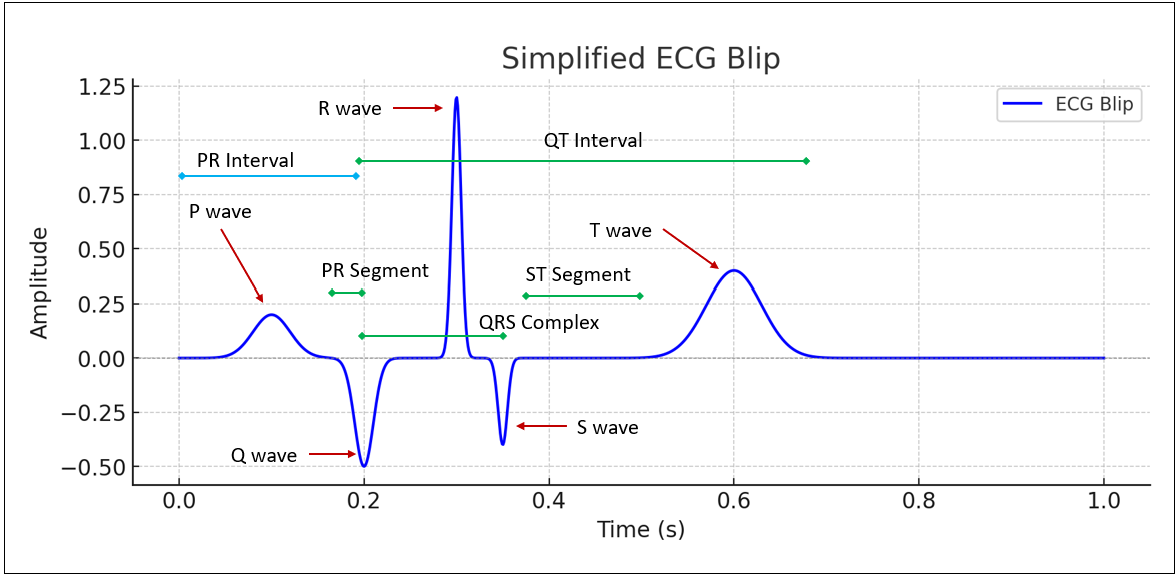 • PR Segment: Time between the end of the P wave and the start of the QRS complex.