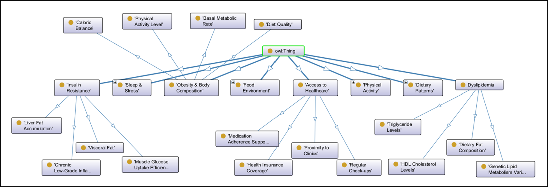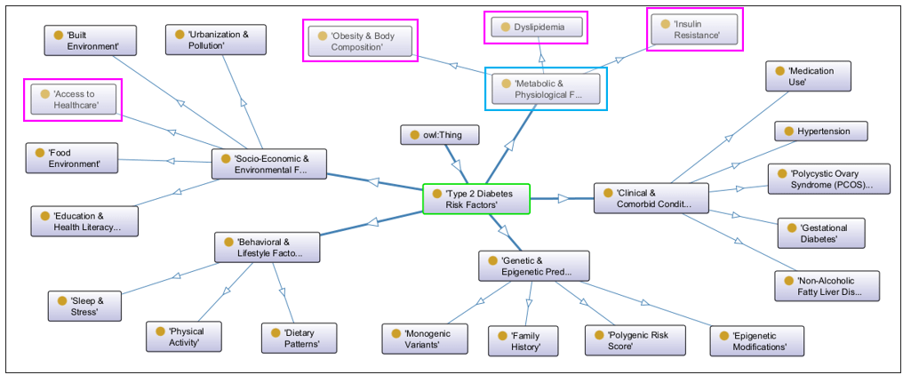 Note: Since I’m not a doctor, I asked ChatGPT (who isn’t a doctor either) to generate this sample ontology for me. So yell at OpenAI for any misconceptions about Type 2 Diabetes.