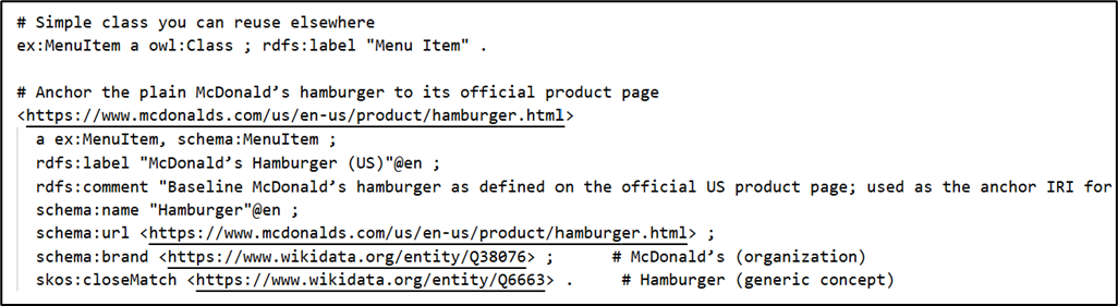 Let’s try one more experiment. We’ll circle back to our McDonald’s hamburger RDF and ask Grok to tell us what it’s about. Prompt to Grok: