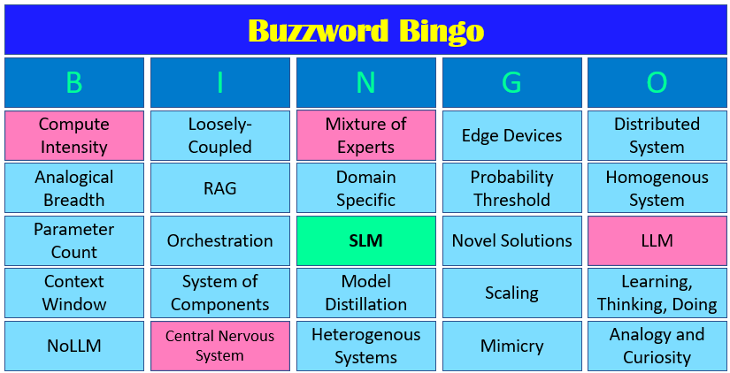 Of course, SLMs aren’t killing off LLMs. What instigated this blog is an analogical situation from the BI world (where I’ve generally lived the past 25 years) that is close to my heart. There is a need for both a bulky, monolithic, meticulously integrated data source and a loosely-coupled federation of domain-specific data sources. The former has a big-picture view but is a bear to create and maintain; the latter, kind of fragmented but easier to piece together.