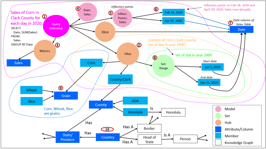 Figure 7 shows an example of one QueryDef of the ISG. I discuss the ISG and QueryDefs extensively in Enterprise Intelligence. However, my blogs, Insight Space Graph and Knowledge Graph BI Component: Insight Space Graph, offers an explanation.