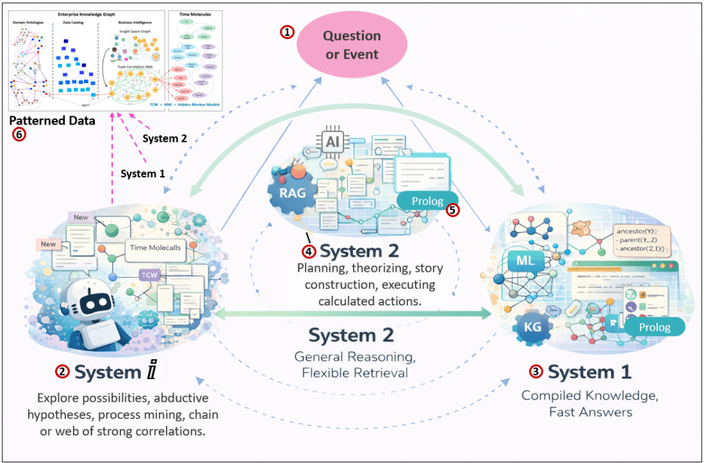 - Analysis — Artificial General Intelligence: Enterprises have been incrementally building this architecture through BI, knowledge graphs, event processing, and process mining, with System ⅈ naturally expressed as large-scale exploration of events, correlations, and processes rather than a single monolithic model.