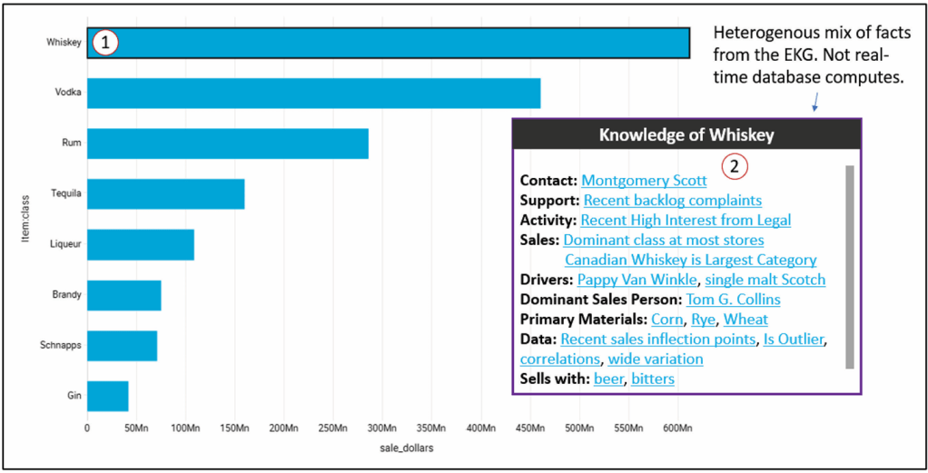 For organizations without embedded visualization tooling, the same experience can be delivered in their custom applications. At the baby-step stage, the goal is simply to allow authors and analysts to see what the KG knows about a selected entity.